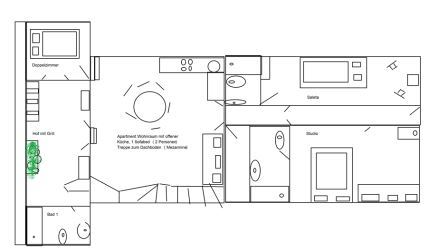 in total 4 bed-rooms, 4 bath-rooms, 1 kitchen, yard, roof-terrace, BBQ, dish-washer, 2x washing-machine, WLAN