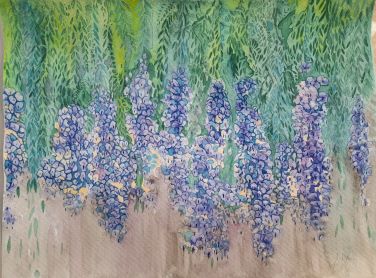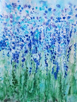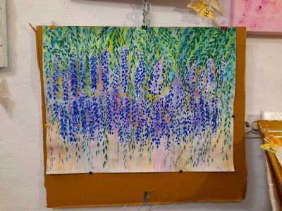 Original watercolor on paper 50cm x 65cm ; abstract " Blue Flowery " € 120,-
