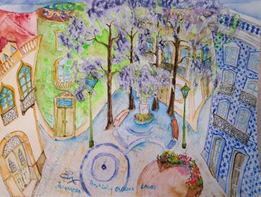 Lagos Rua Cardeal Netto, Original Aquarela , A3, sold
