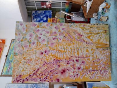 "Yellow Flowery" 58 x 95,5 cm original oil on canvas framed