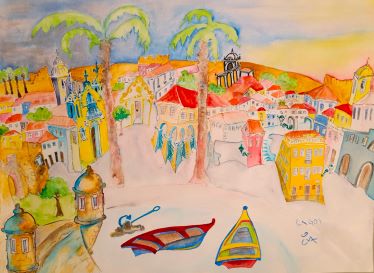 Santa Maria church , Lagos,original aquarela, A3,€ 350,-