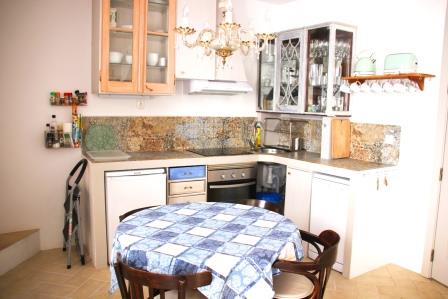 The kitchen has a dish-washer, ceran cooker 4 plates, oven, fridge and all equipement you need for a holiday stay.From the living-area there is a door with a few steps to the yard. The outside steps lead to the upper terrasses.