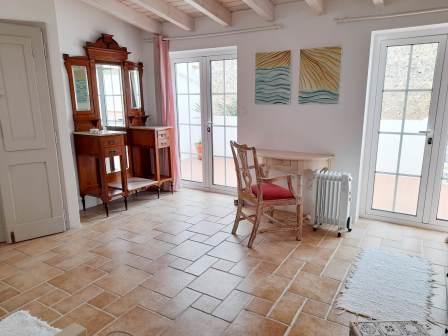 Kurzgefasst: 2 Schlafzimmer, 2 Bäder, Hof, 2 Terrassen, Wohnbereich mit offener Küche und Kamin für den Winter