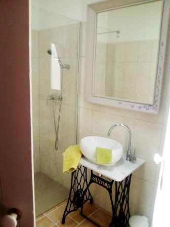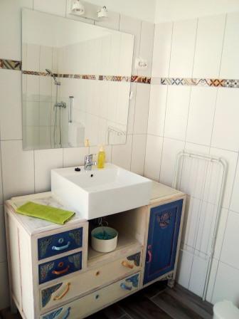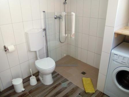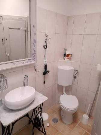 Das Bad liegt auf der gleichen Etage , durch einen kleinen Flur getrennt
