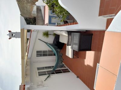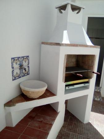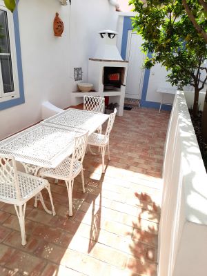 Der Hof des Apartments CASINHA ALEGRE liegt direkt an der historischen Stadtmauer grenzt, hier gibt es einen Grill.